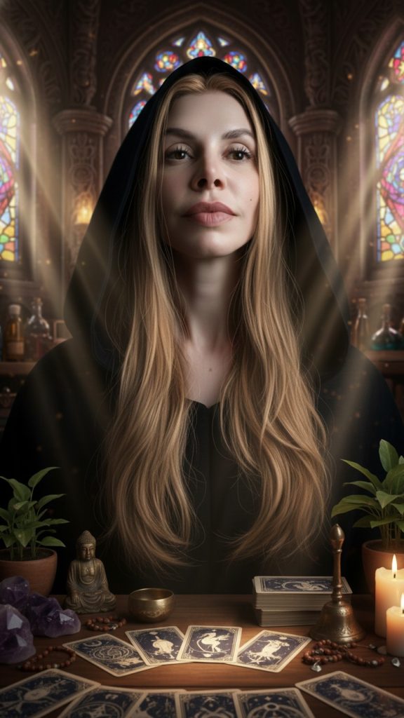 Atua com quatro tarôs distintos e um baralho de cartas como instrumentos de leitura profunda da alma. Cada consulta é conduzida com responsabilidade espiritual, foco terapêutico e interpretação simbólica voltada ao autoconhecimento, orientação consciente e tomada de decisões alinhadas ao propósito.